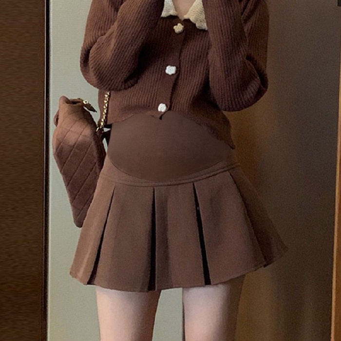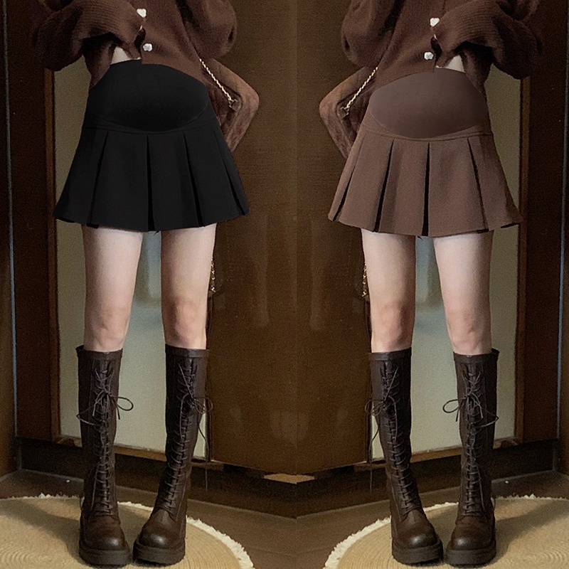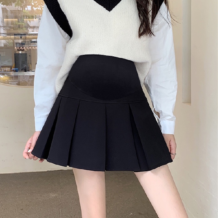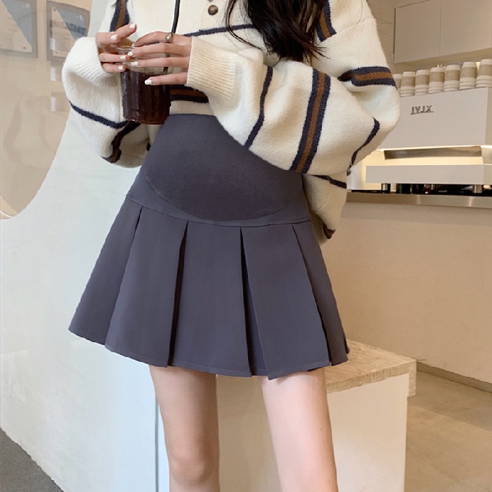 ชุดกระโปรงสั้น ทรงเอ เข้ารูป สีพื้น แฟชั่นฤดูใบไม้ผลิ และฤดูใบไม้ร่วง สําหรับสตรีตั้งครรภ์