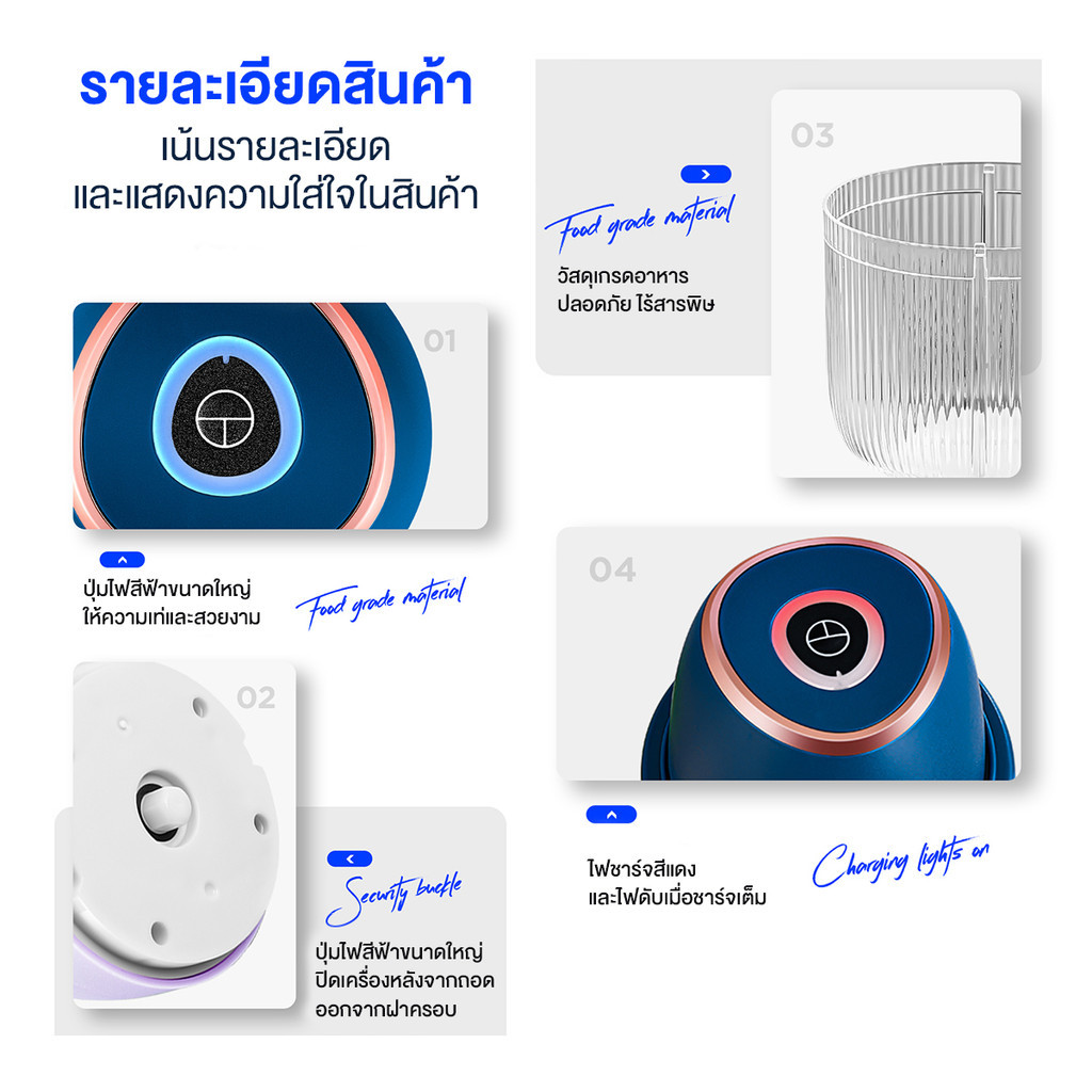 เครื่องปั่นกระเทียม มินิไร้สาย USB ห้องครัว ประหยัดไฟ ปั่นละเอียด