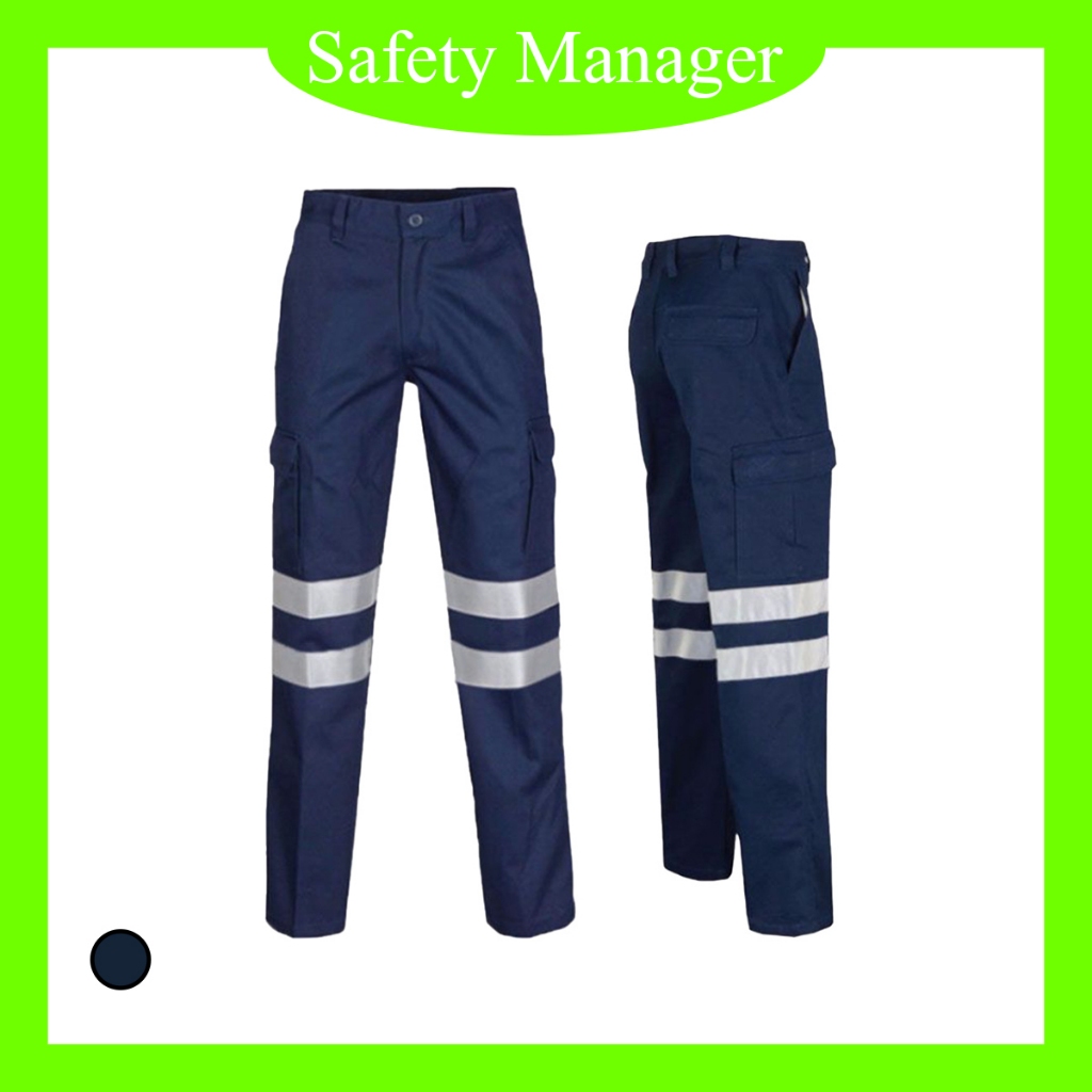 SM กางเกง 6 กระเป๋า แถบสะท้อนแสงหนา2นิ้ว4เส้น ใส่ได้ทั้งชายและหญิง ชุดช่างโรงงาน ชุดทำงานซ่อมรถยนต์ ช่างเชื่อม