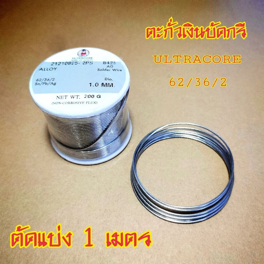 ตะกั่วบัดกรีผสมเงิน Ultra core AG 62/36/2 1mm. ตัดแบ่งขาย 1 เมตร
