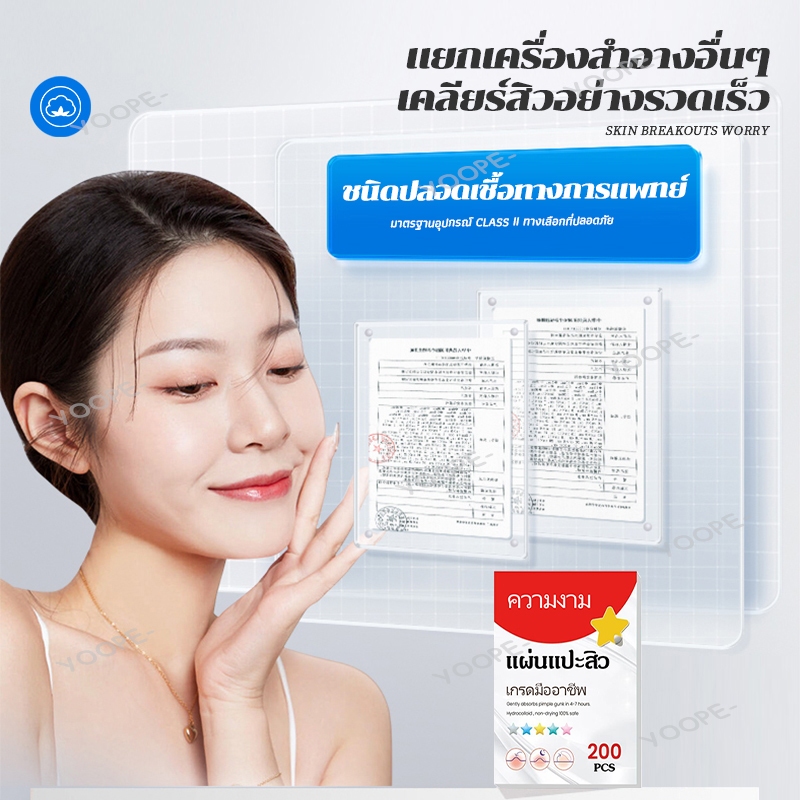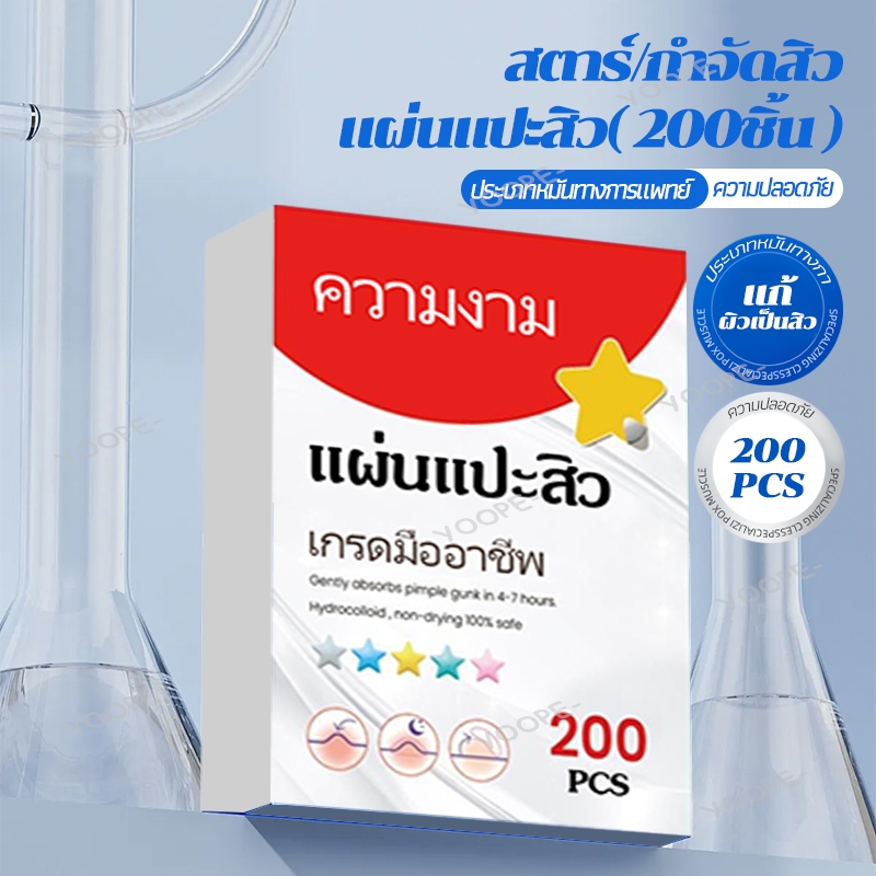 แผ่นแปะสิว แผ่นแปะรักษาสิว สําหรับติดตกแต่งสิว แผ่นสิว รูปดาวน่ารัก 200ชิ้น/ถุง 5 สี Acne Patches