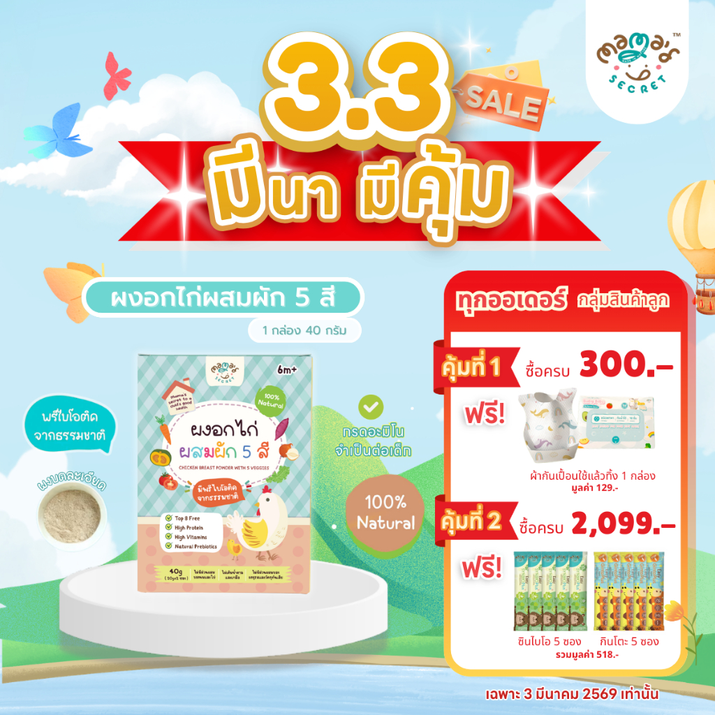 (มีฮาลาล) ตัวช่วยเด็กไม่กินเนื้อสัตว์ ผงอกไก่ ผสมผัก 5 สี เสริมโปรตีนและพรีไบโอติคจากธรรมชาติ อาหารเด็ก6เดือน MamaSecret