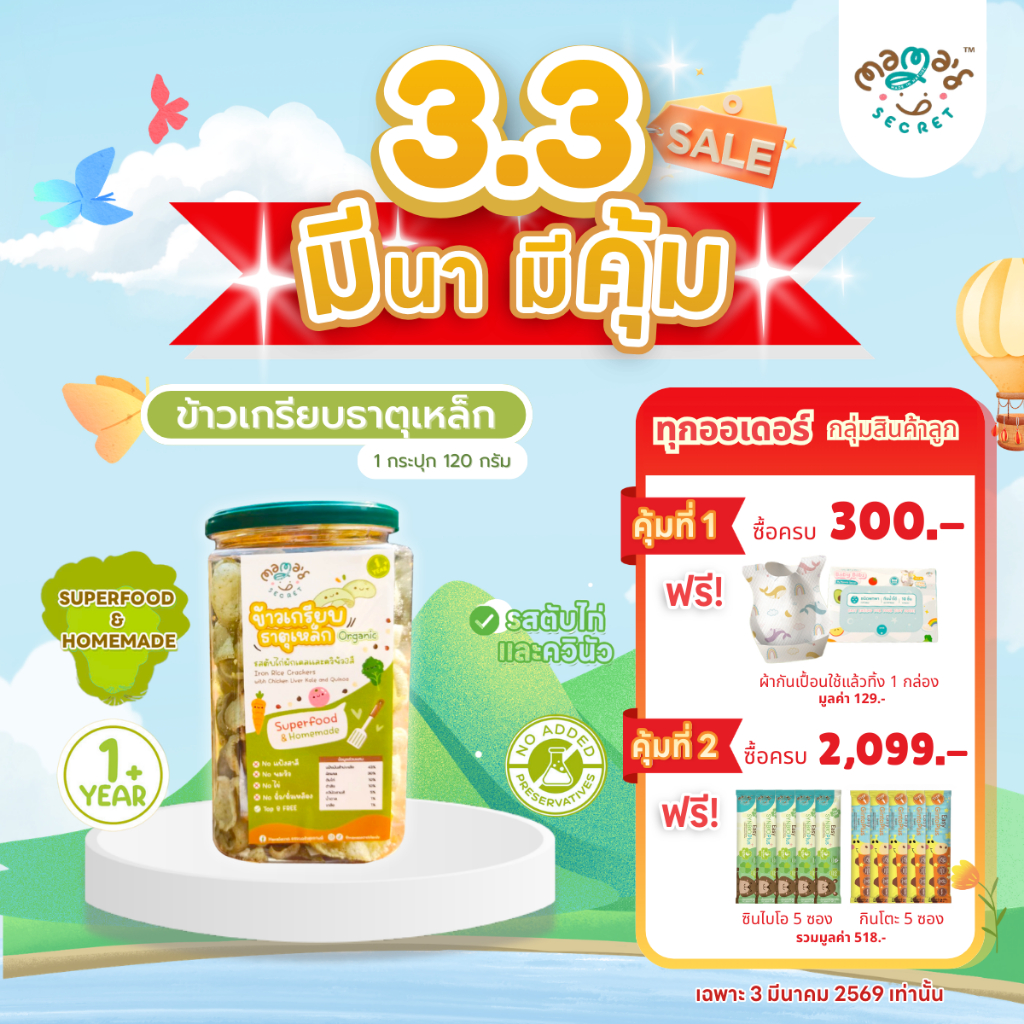 ขนมเด็กเสริมธาตุเหล็ก ข้าวเกรียบธาตุเหล็ก1ขวบ กลูเต็นฟรี ไม่มีนมวัว ไม่มีไข่ แป้งสาลี แพ้อาหารทานได้