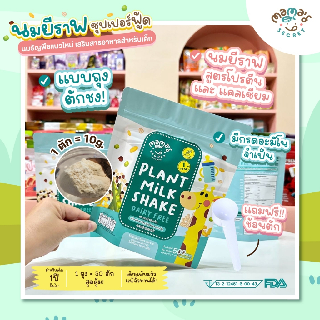 ซองถุงตักชง นมยีราฟ เสริมวิตามิน โปรตีนและแคลเซียม ไม่มีน้ำตาล นมพืชเด็กแพ้ ไม่มีนมวัวและถั่วเหลือง
