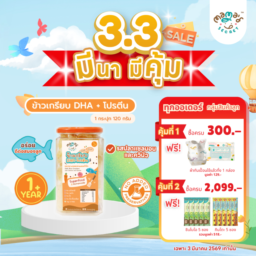ข้าวเกรียบDHA ขนมเด็ก1ขวบ ขนมบำรุงสมองจากธรรมชาติ โปรตีนสูง รสปลาแซลมอนและควินัว กลูเต็นฟรี ไม่มีนมวัว ไข่ แป้งสาลี