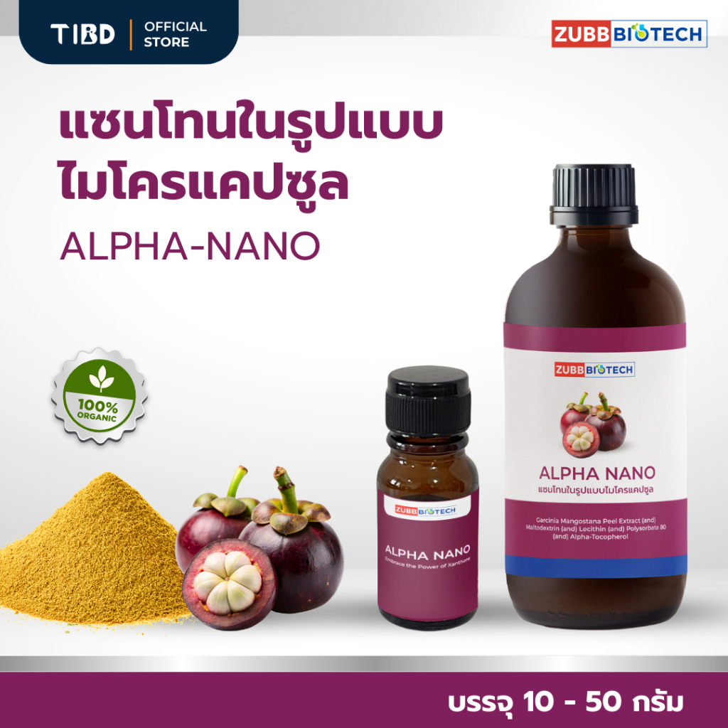 TIBD - สารสกัด แซนโทนในรูปแบบ ไมโครแคปซูล ALPHA-NANO ขวดแก้ว 10 - 50 กรัม / Premium Extract