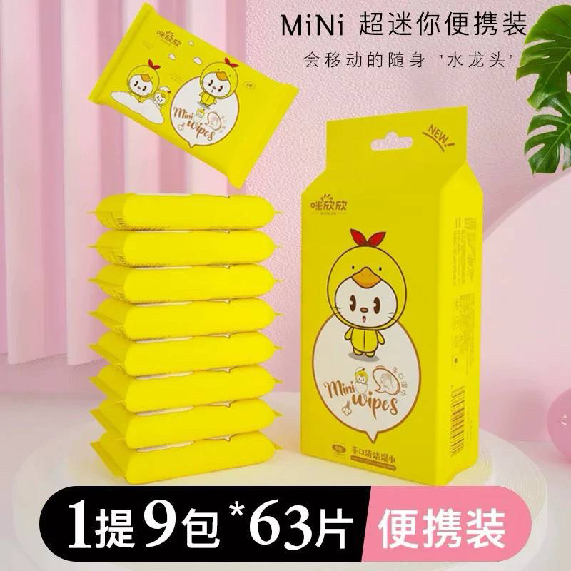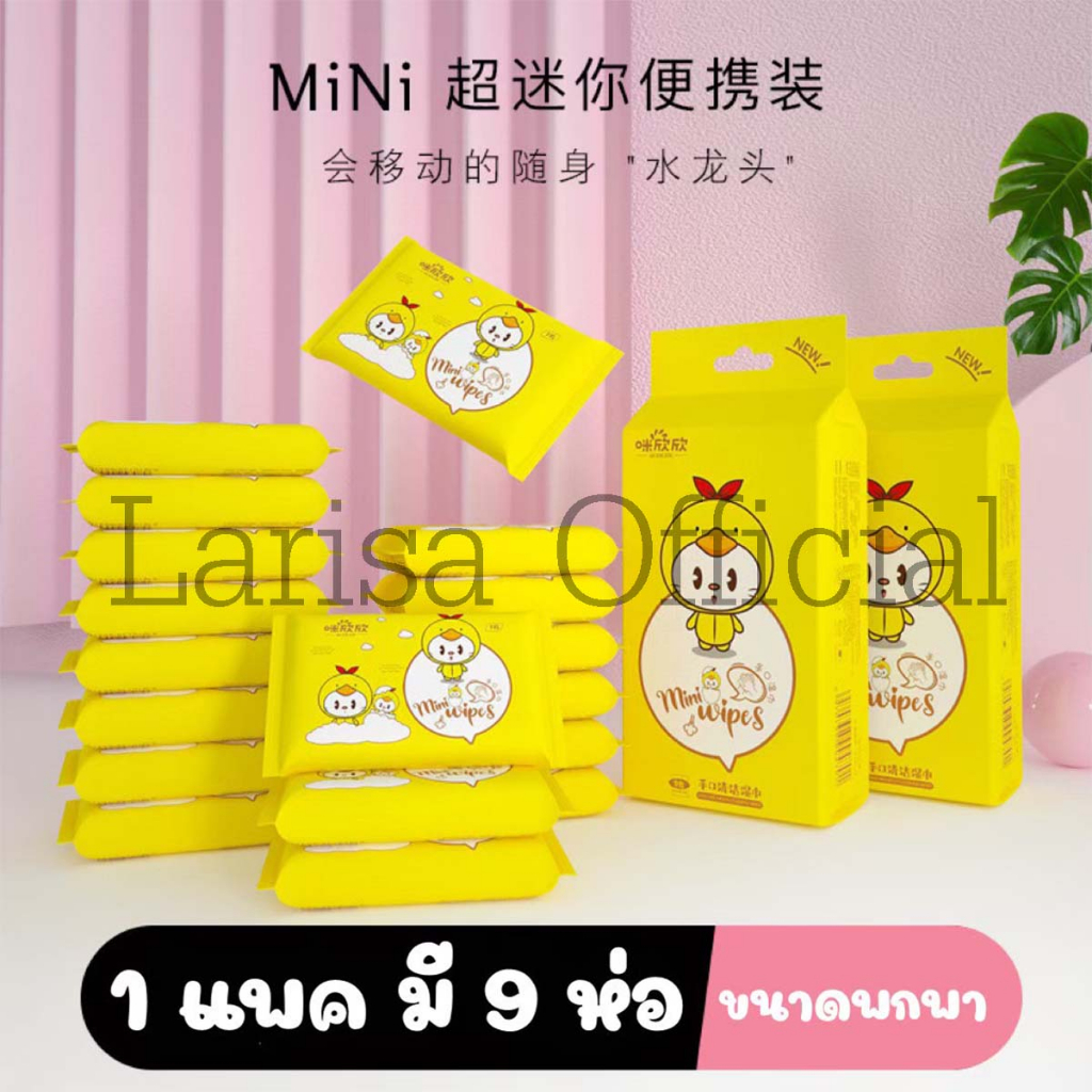 🐥พร้อมส่ง🐥 ทิชชู่เปียกเป็ดจิ๋ว พกพา (1แพคมี9ห่อ) เนื้อสัมผัส นุ่มไม่ระคายเคือง