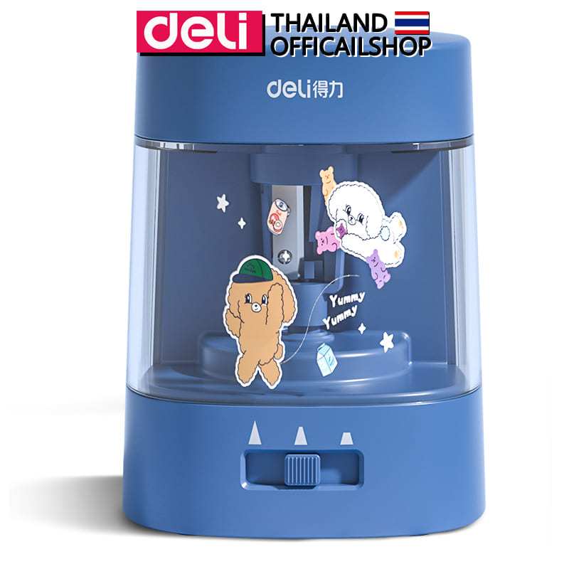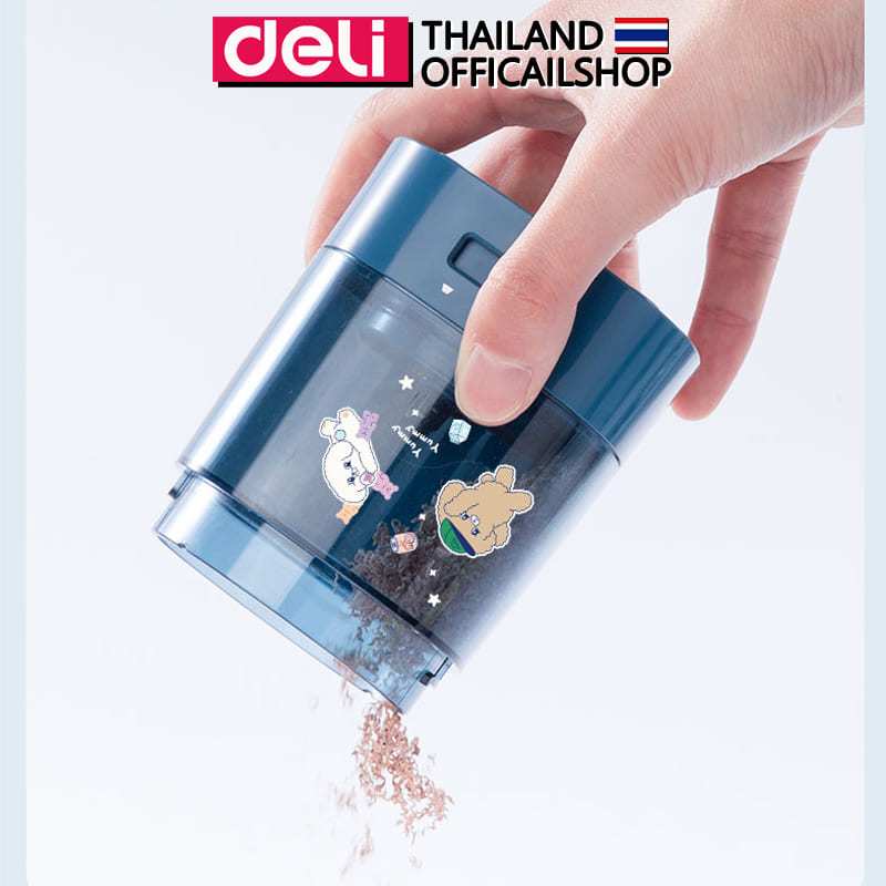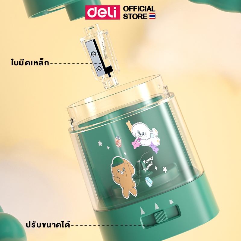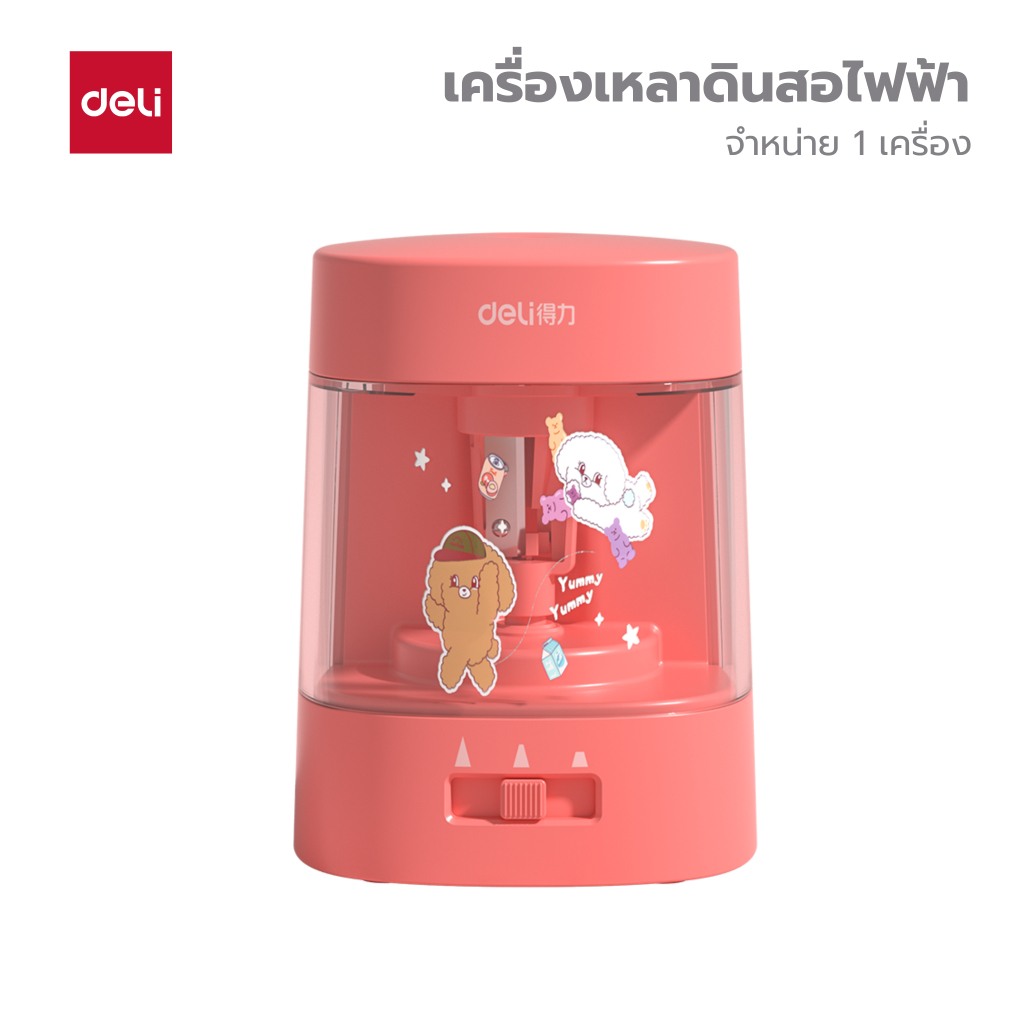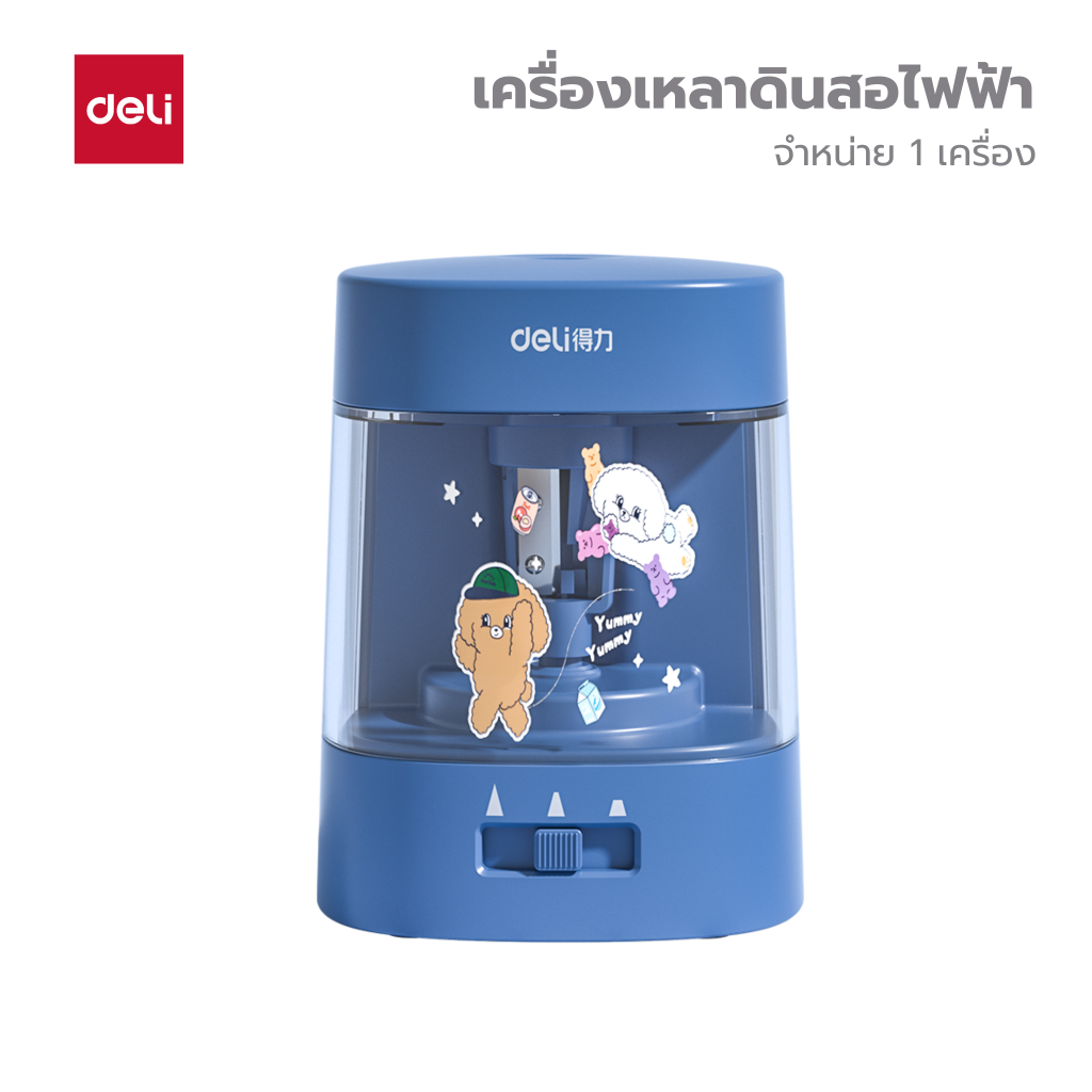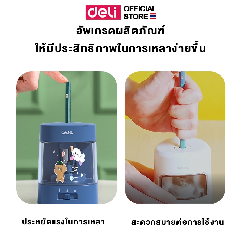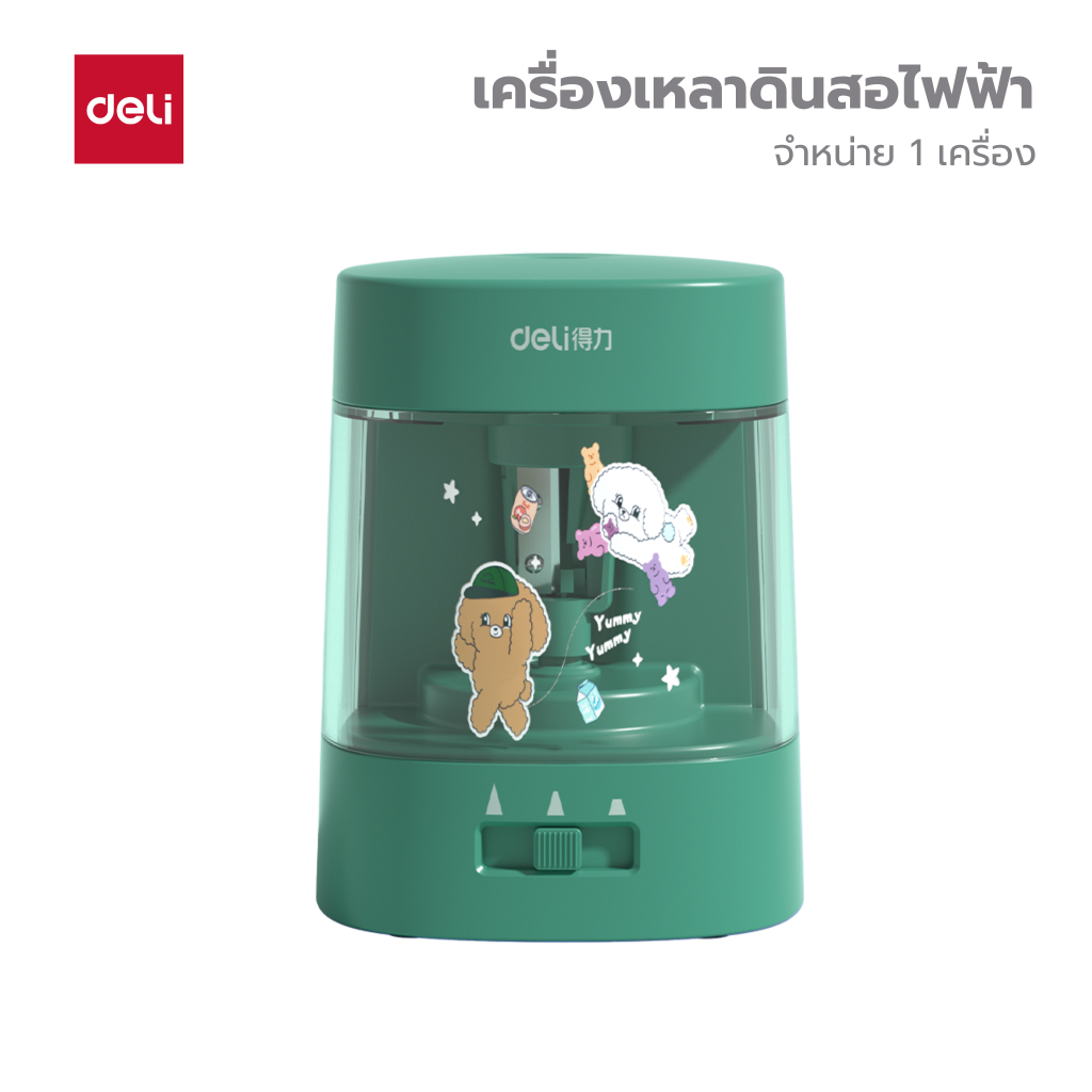 เครื่องเหลาดินสอไฟฟ้า Deli รุ่น 68658A ใช้ถ่าน AA 2 ก้อน (3 สี / จำหน่าย 1 เครื่อง)