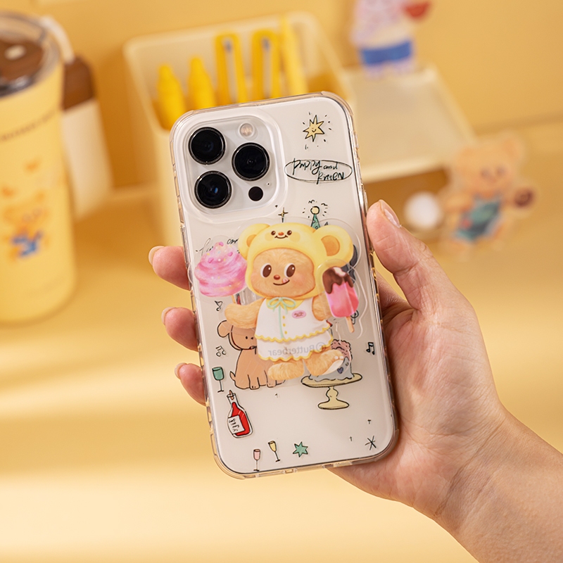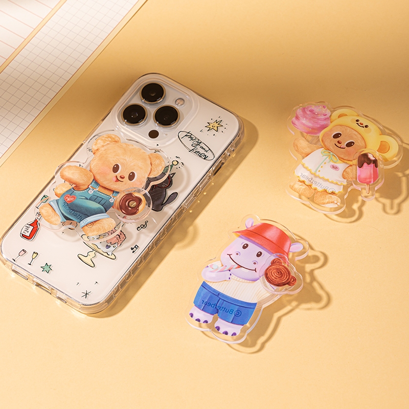 (Butterbear X Deli) กริ๊ปทอก ที่ตั้งโทรศัพท์ ที่ตั้งมือถือ บัตเตอร์แบร์ ฮิปปี้ เขย่าได้ (คละลาย)