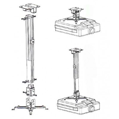 ขาแขวน ขายึด โปรเจคเตอร์ แข็งแรง ใช้ได้กับทุกรุ่น ปรับความยาวได้ 3 ระดับ 43-65 ซม. Projector Ceiling Mount White
