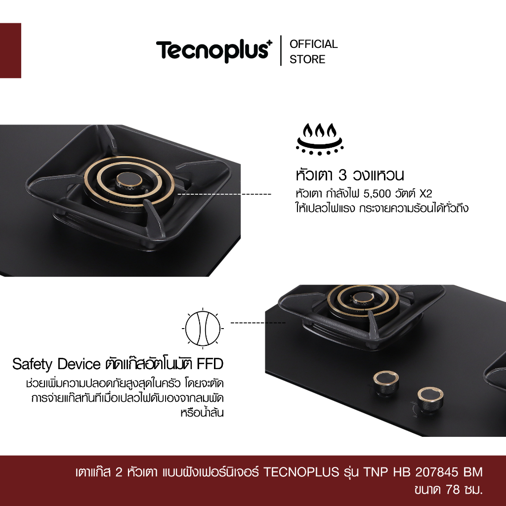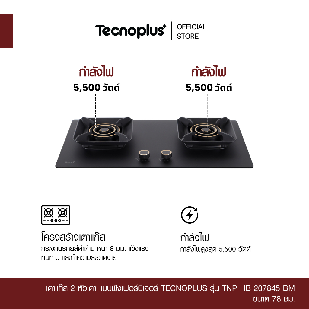 เตาแก๊ส 2 หัวเตา แบบฝังเฟอร์นิเจอร์ Tecnoplus รุ่น TNP HB 207845 BM