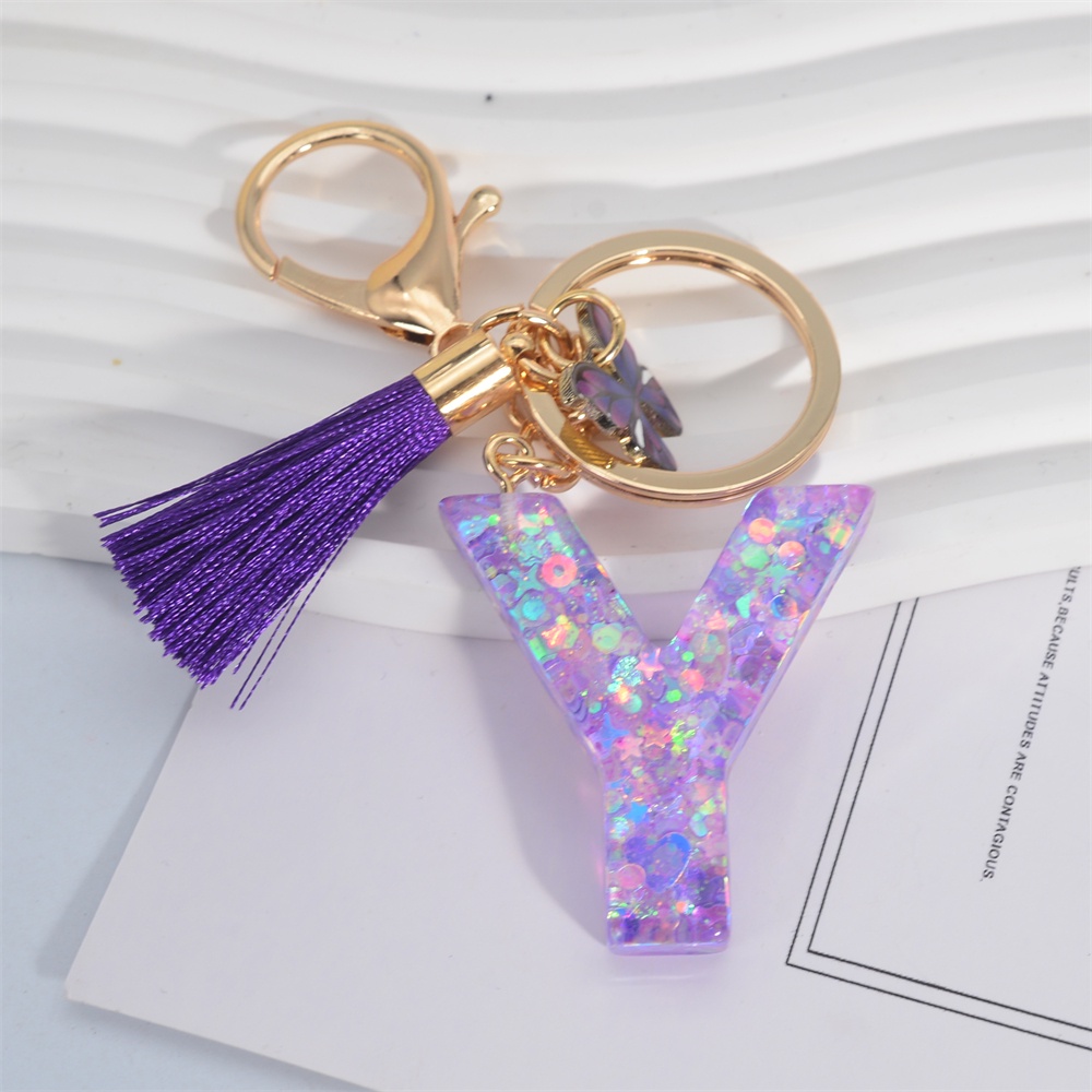 A-z สีม่วง ดาว ตัวอักษร พวงกุญแจ พู่น่ารัก จี้ผีเสื้อ พวงกุญแจเริ่มต้น สําหรับผู้หญิง กระเป๋าถือ เสน่ห์ รถ พวงกุญแจ อุปกรณ์เสริม