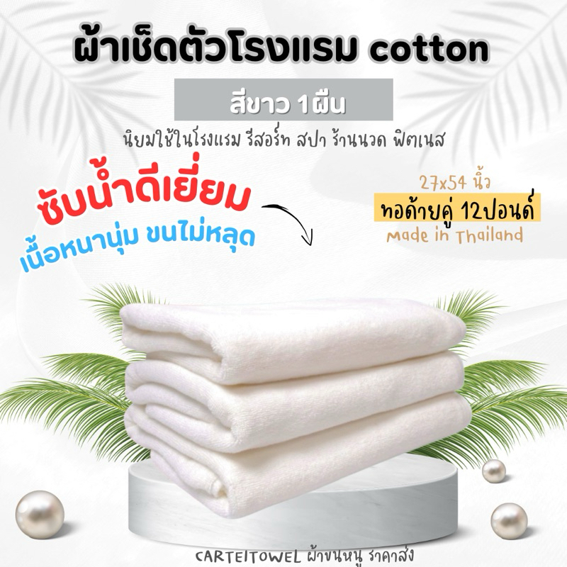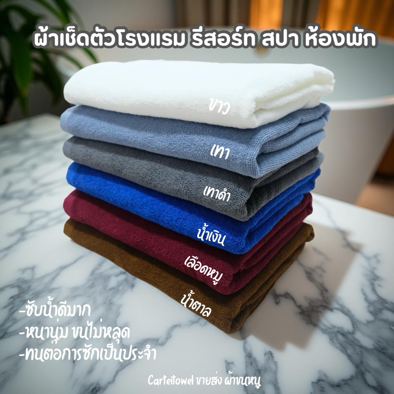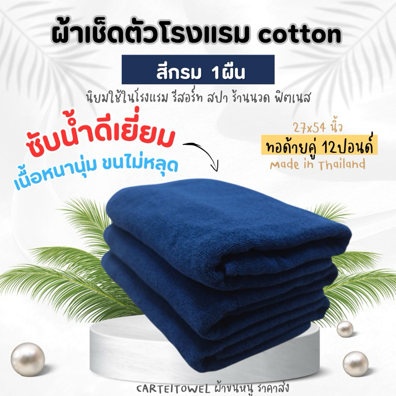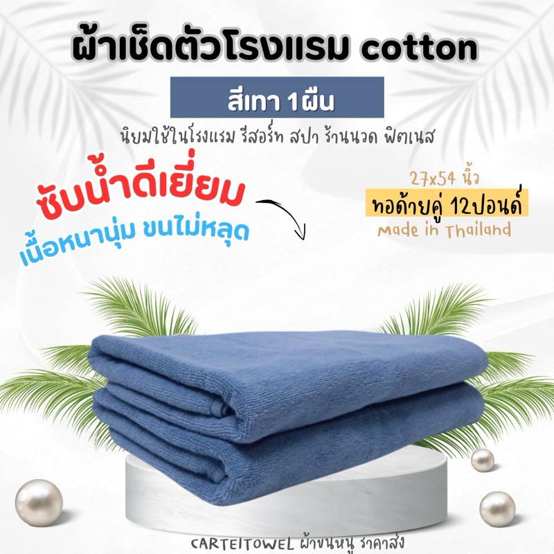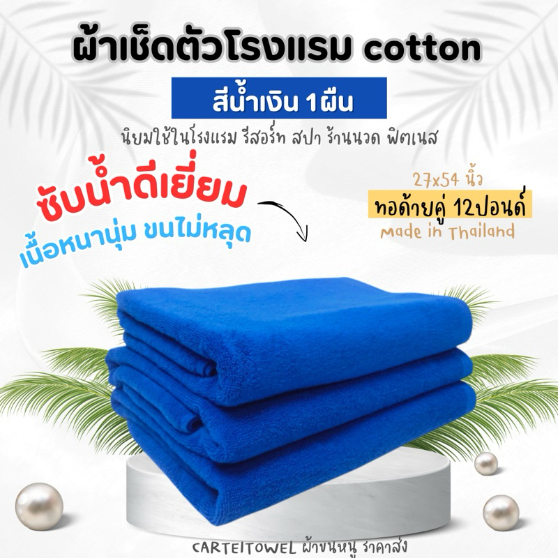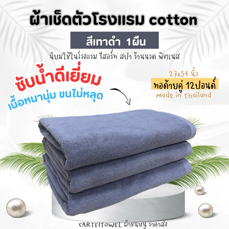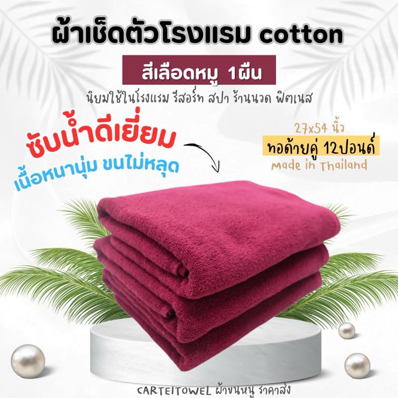 ผ้าขนหนู ผ้าเช็ดตัวโรงแรม สีพื้น คอตตอน 100%ซับน้ำ หนานุ่ม 27x54นิ้ว[เช็ดตัว] 12ปอนด์ ปลีก