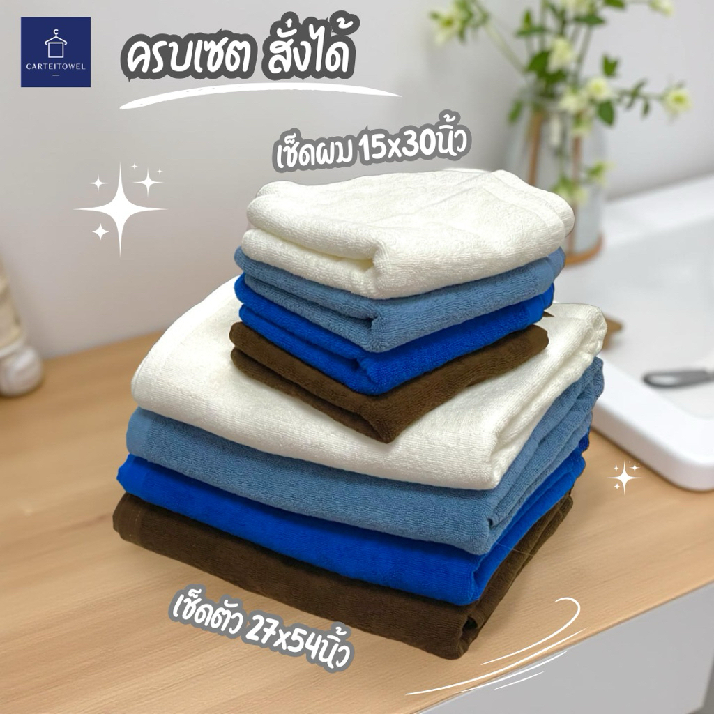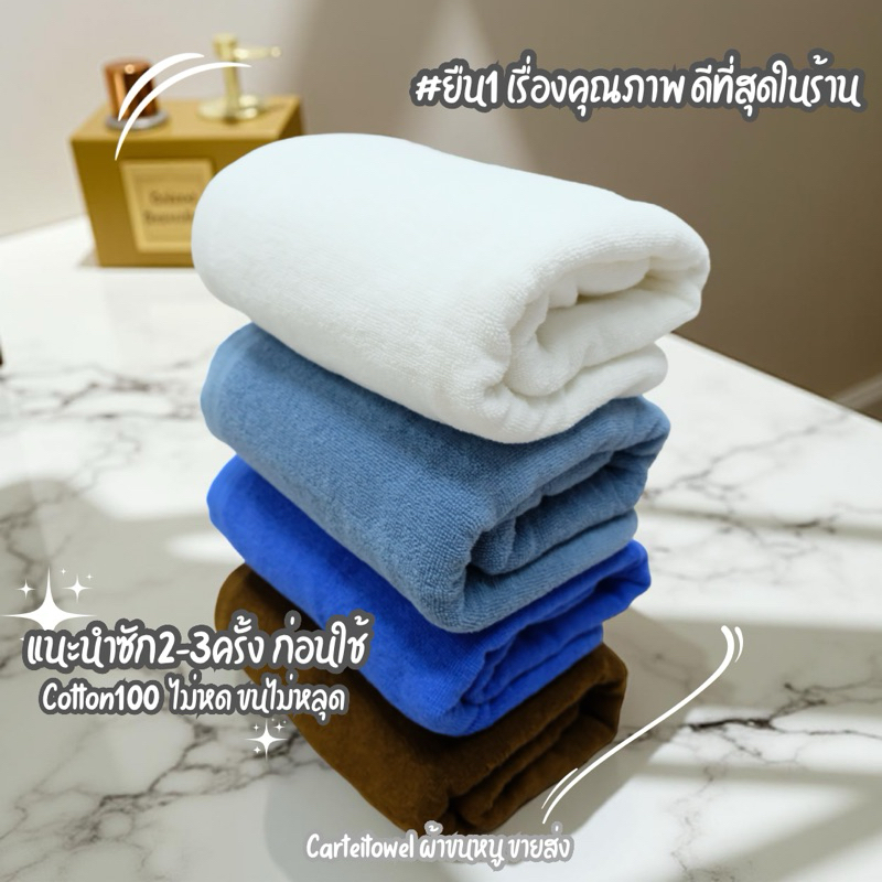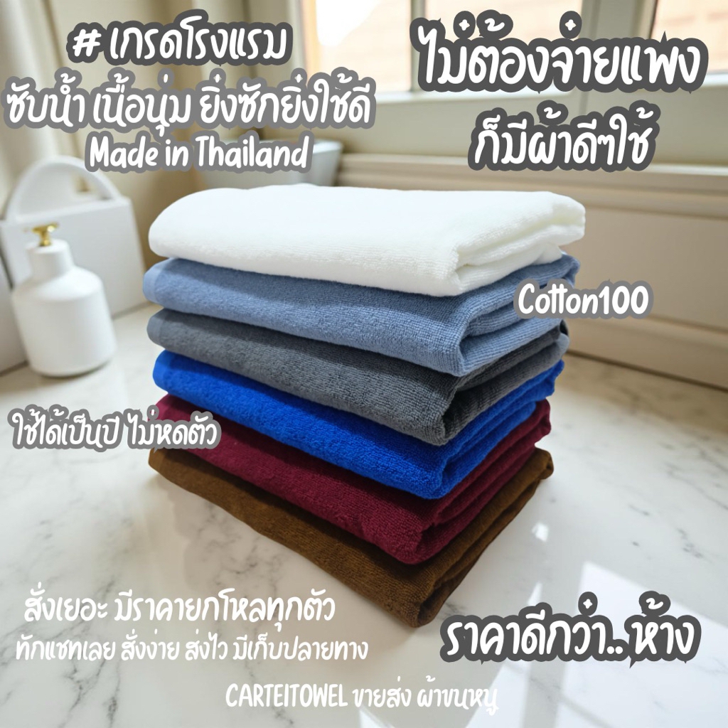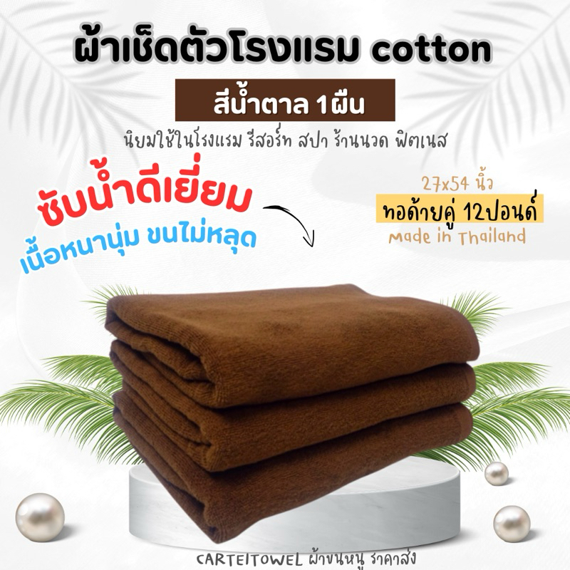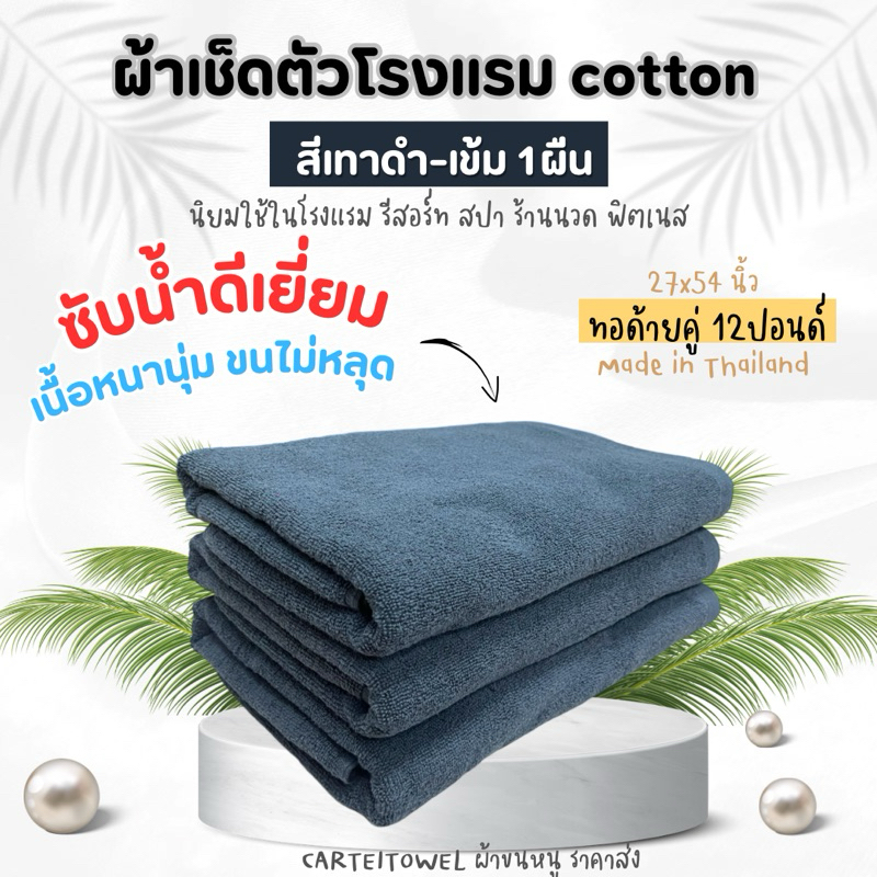ผ้าขนหนู ผ้าเช็ดตัวโรงแรม สีพื้น คอตตอน 100%ซับน้ำ หนานุ่ม 27x54นิ้ว[เช็ดตัว] 12ปอนด์ ปลีก