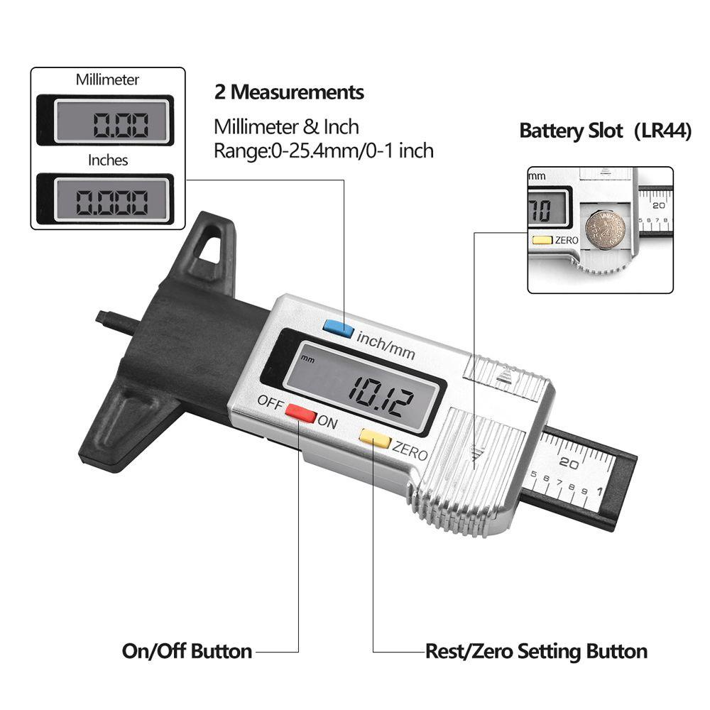 Shanlin เกจวัดความหนา 0-24.5 มม. เครื่องมือรถยนต์ รถบรรทุก คาลิปเปอร์ เครื่องวัดความลึกยาง เครื่องมือวัดยาง ระบบตรวจสอบยาง เกจวัดความลึก เกจวัดความลึกของดอกยางดิจิทัล
