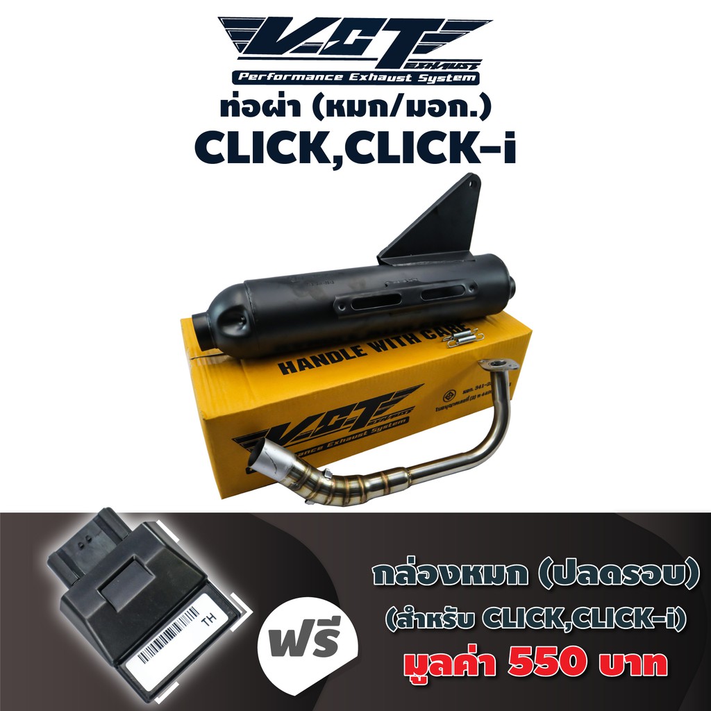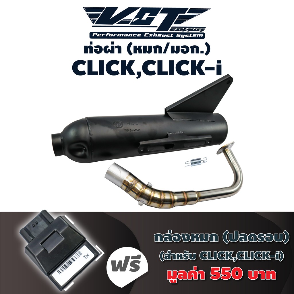 (ชุดสุดคุ้ม) VCT ท่อผ่า (หมก/มอก) CLICK,CLICK-i (ปลายน๊อต3รู) สีดำ + แถมฟรี กล่องแต่ง/หมก CLICK-I [38770-KVB-T03]