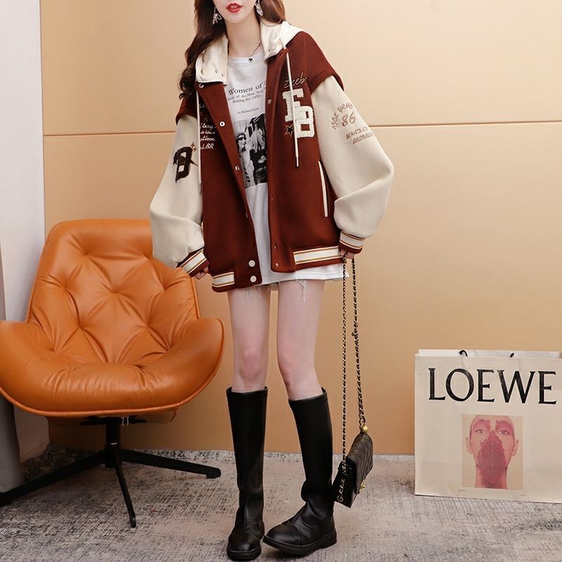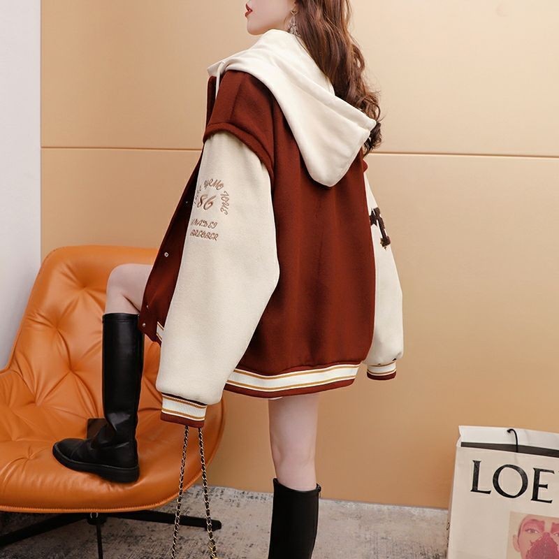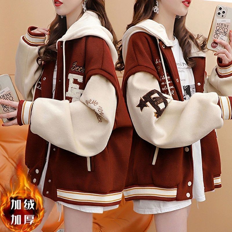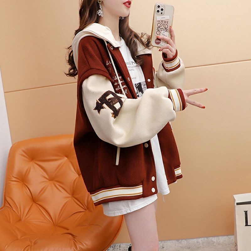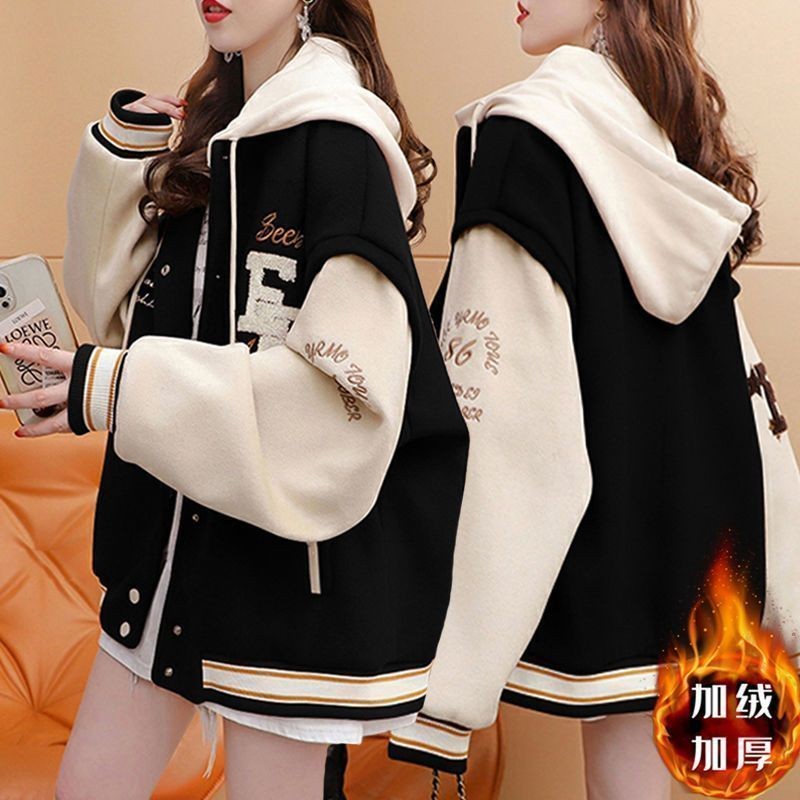 เสื้อแจ็คเก็ตเบสบอลแบบหนาแจ๊กเก็ตเวอร์ชั่นเกาหลีโอเวอร์ไซส์คาร์ดิแกนสุดเท่
