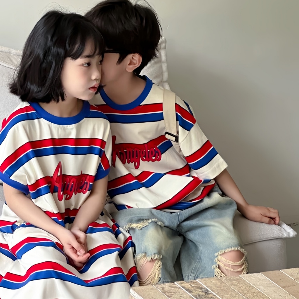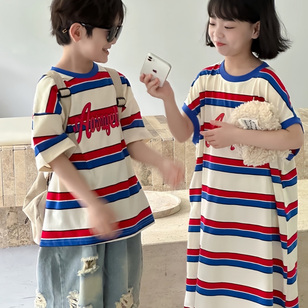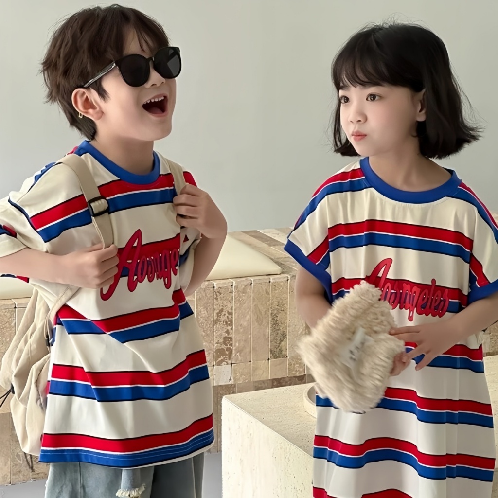 Beryl kids🌸เสื้อแขนสั้นเด็ก แฟชั่น🎀พิมพ์ลายตัวอักษรลายทาง สไตล์เกาหลี สีสดใส ผ้านิ่ม ลำลอง ฤดูร้อน รุ่นใหม่