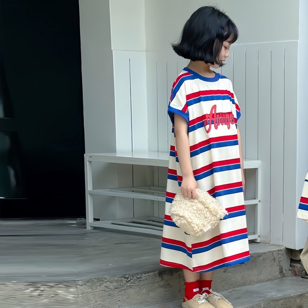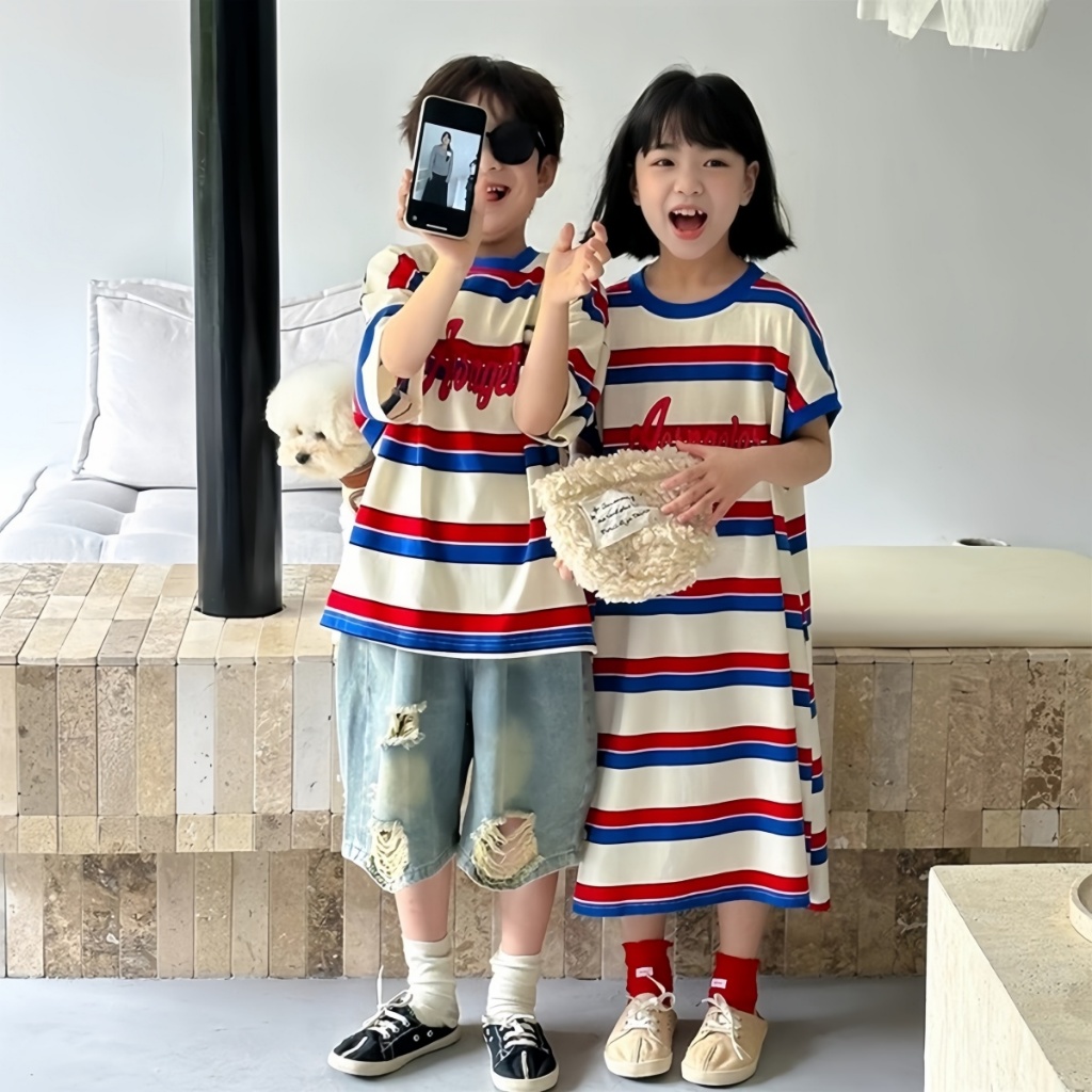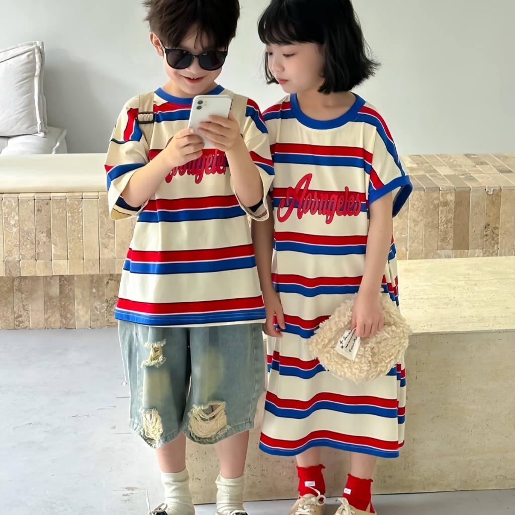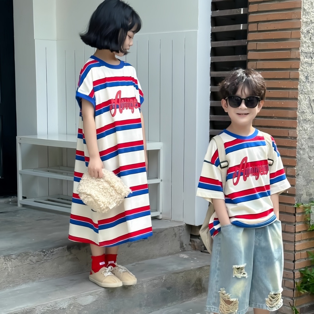 Beryl kids🌸เสื้อแขนสั้นเด็ก แฟชั่น🎀พิมพ์ลายตัวอักษรลายทาง สไตล์เกาหลี สีสดใส ผ้านิ่ม ลำลอง ฤดูร้อน รุ่นใหม่