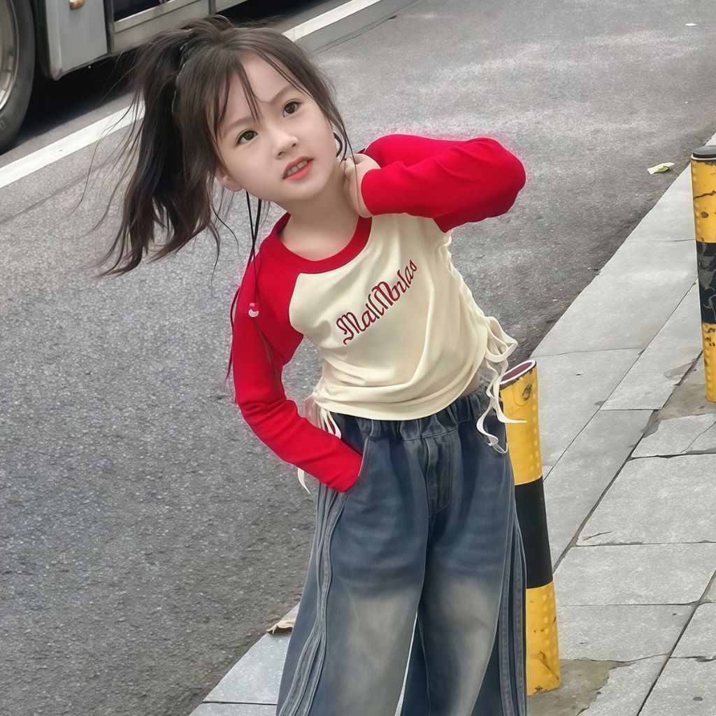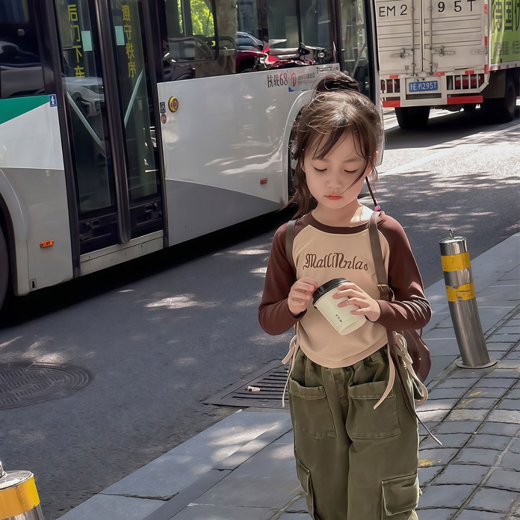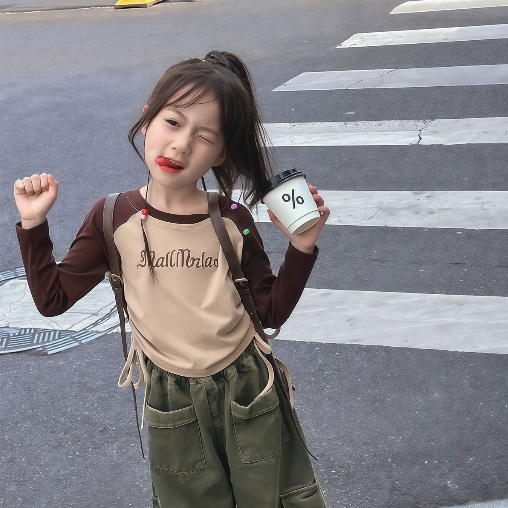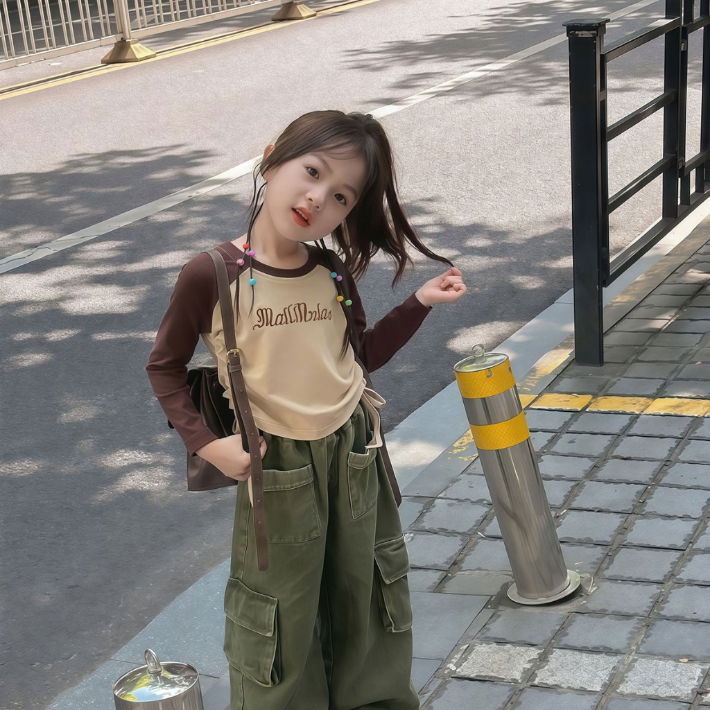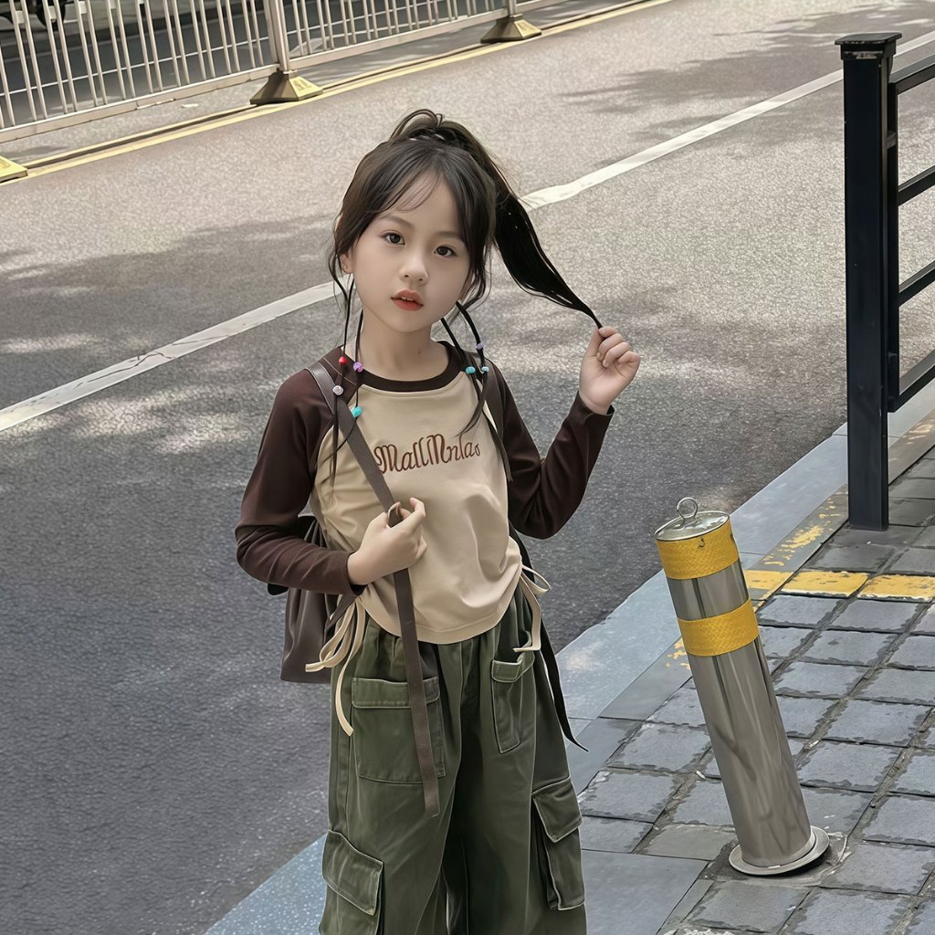 Beryl kids🌸เสื้อแขนยาวเด็ก🎀เสื้อยืดคอกลมเด็กผู้หญิง พิมพ์ลายตัวอักษรแฟชั่นสไตล์อเมริกัน ทรงพอดีตัวพร้อมดีไซน์เอวจีบ