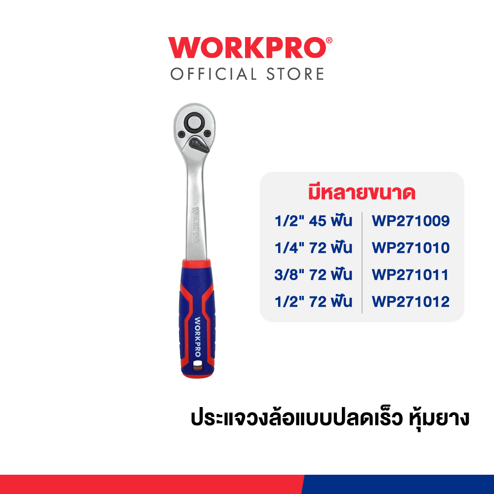 WORKPRO ประแจวงล้อแบบปลดเร็ว ด้ามฟรี ด้ามก๊อกแก๊ก หุ้มยาง (QUICK- RELEASE) 45 ฟัน, 72 ฟัน