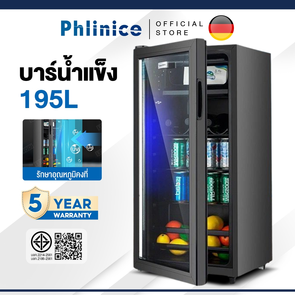 Phlinice ตู้เย็นมินิ ขนาด ตู้เย็นมินิบาร์ ความจุ 195L สามารถใช้ได้ในบ้าน หอพัก ที่ทำงาน ตู้เย็นพกพา