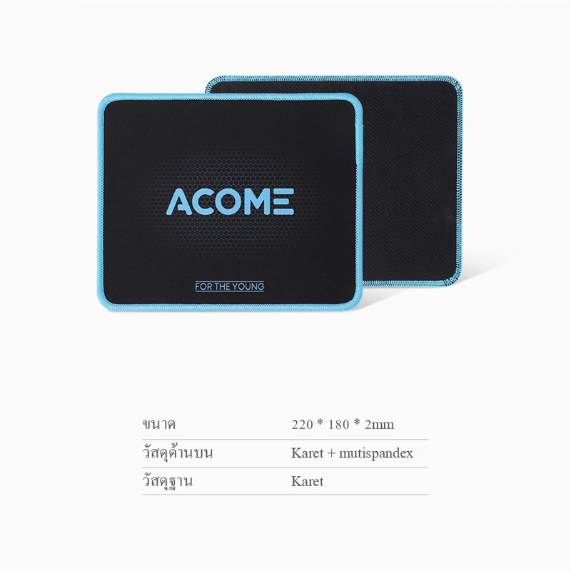 ACOME แผ่นรองเมาส์ AMP01/RP01 Mousepad คุณภาพดี ขนาด 22x18 สีสันทันสมัย ของแท้ 100% สีดำ