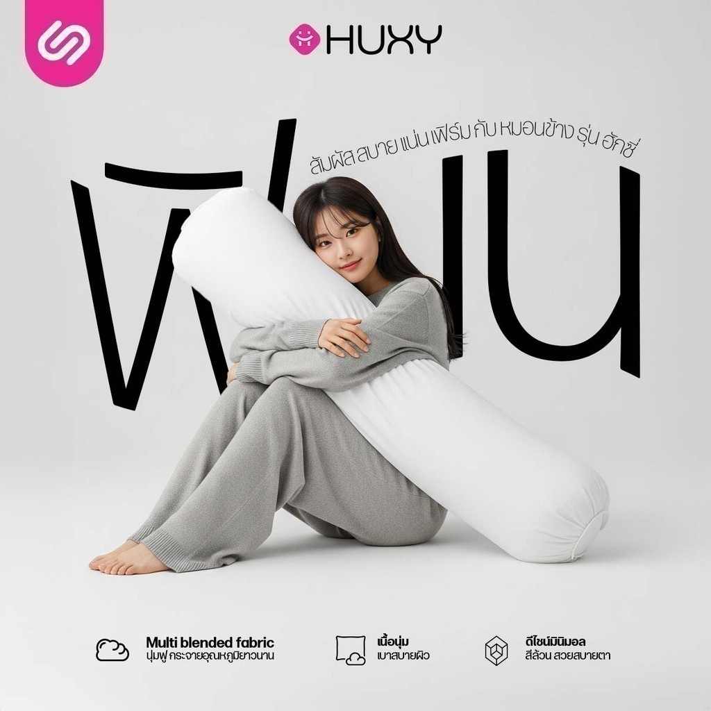SiamLatex Huxy หมอนข้างใยโพลี ผสานรวมกับคอตตอน หมอนข้างเพื่อสุขภาพ เนื้อแน่นกว่ารุ่นปกติถึง 40%