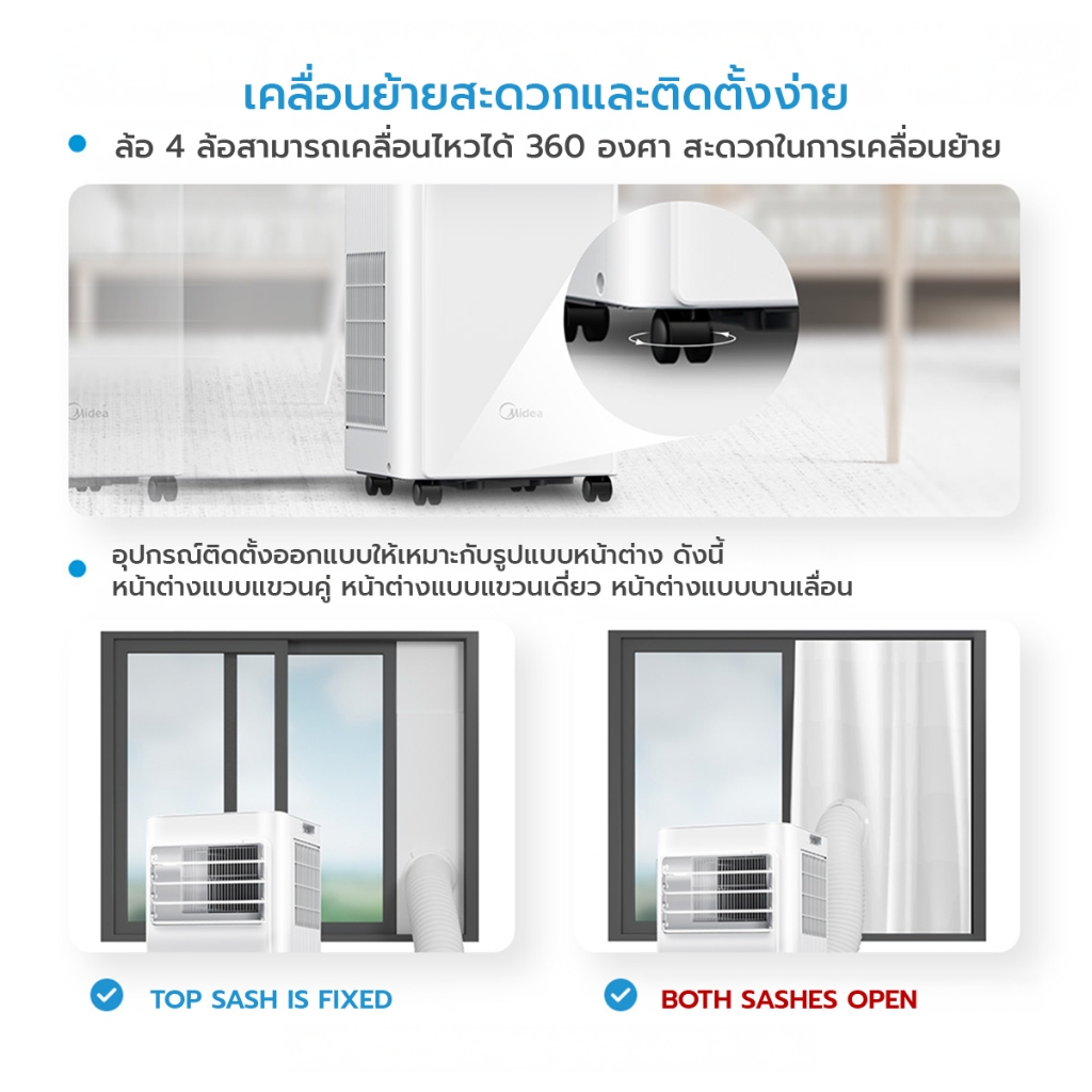 Midea แอร์เคลื่อนที่ Portable Air MPA ขนาด 7000 BTU รุ่น MPPA-07CRN7 เย็นเร็ว , หน้าจอแสดงผล LED , ติดตั้งง่าย