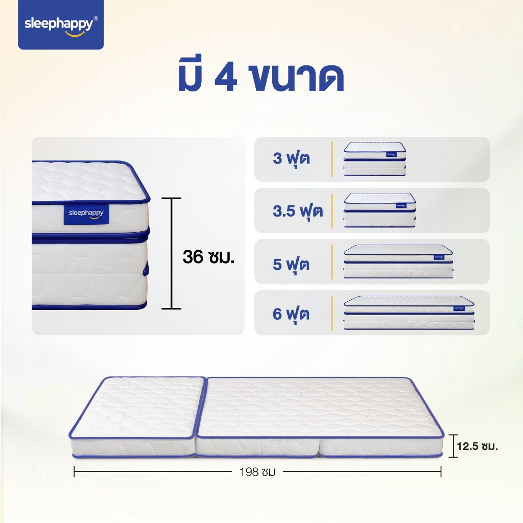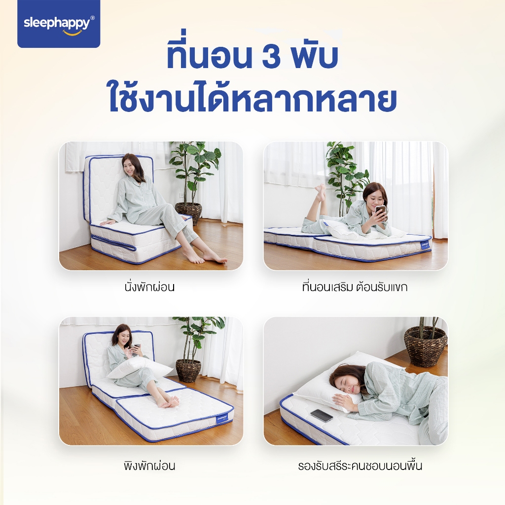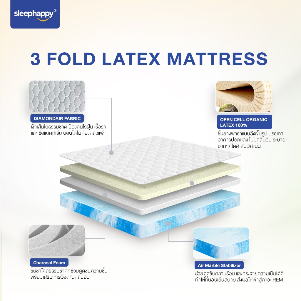 Sleephappy ที่นอน 3 พับ รุ่น 3 Fold Latex Topper หนา 12.5 ซม. ยางพาราแท้ เพิ่มชั้นชาร์โคลช่วยดูดซับกลิ่นและลดความอับชื้น
