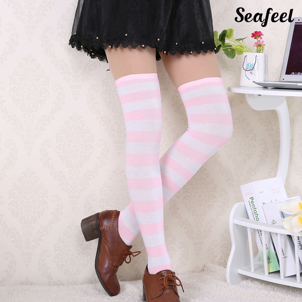 seafeel Sweet Women Stripe Thigh High Over The Knee Stockings Stretch Long Cosplay Socks