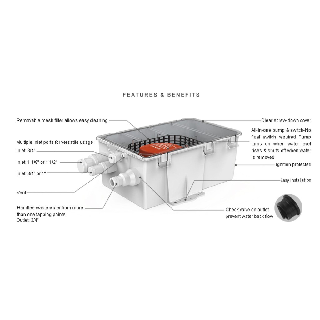 seaflo ระบบปั๊มอาบน้ำ 24V Dc 750 GPH Shower pump system Bilge Pump 24V 750GPH SFBP2-G750-07
