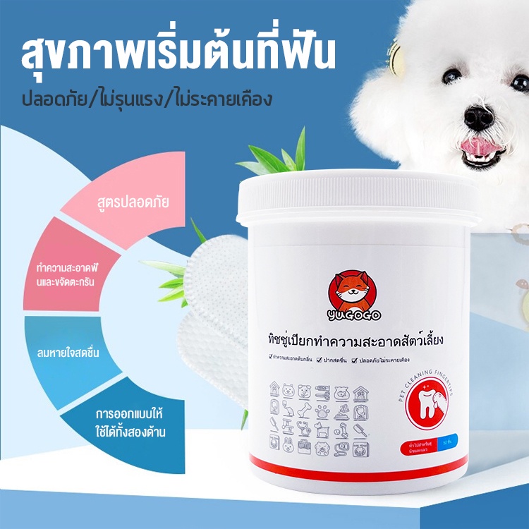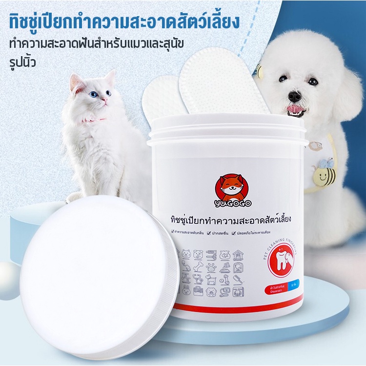 yugogo🐾สัตว์เลี้ยงแปรงฟัน ผ้าเช็ดทำความสะอาดฟันสัตว์เลี้ยง ทำความสะอาดฟันและขจัดตะกรัน ปลอดภัย ไม่รุนแรง ไม่ระคายเคือง